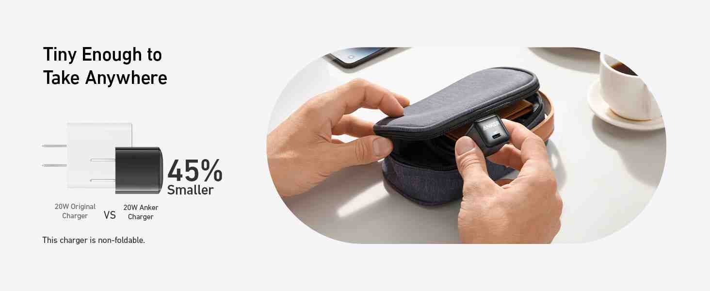 - Small Size, Big Power: 45% smaller than an original 20W charger, but just as powerful.