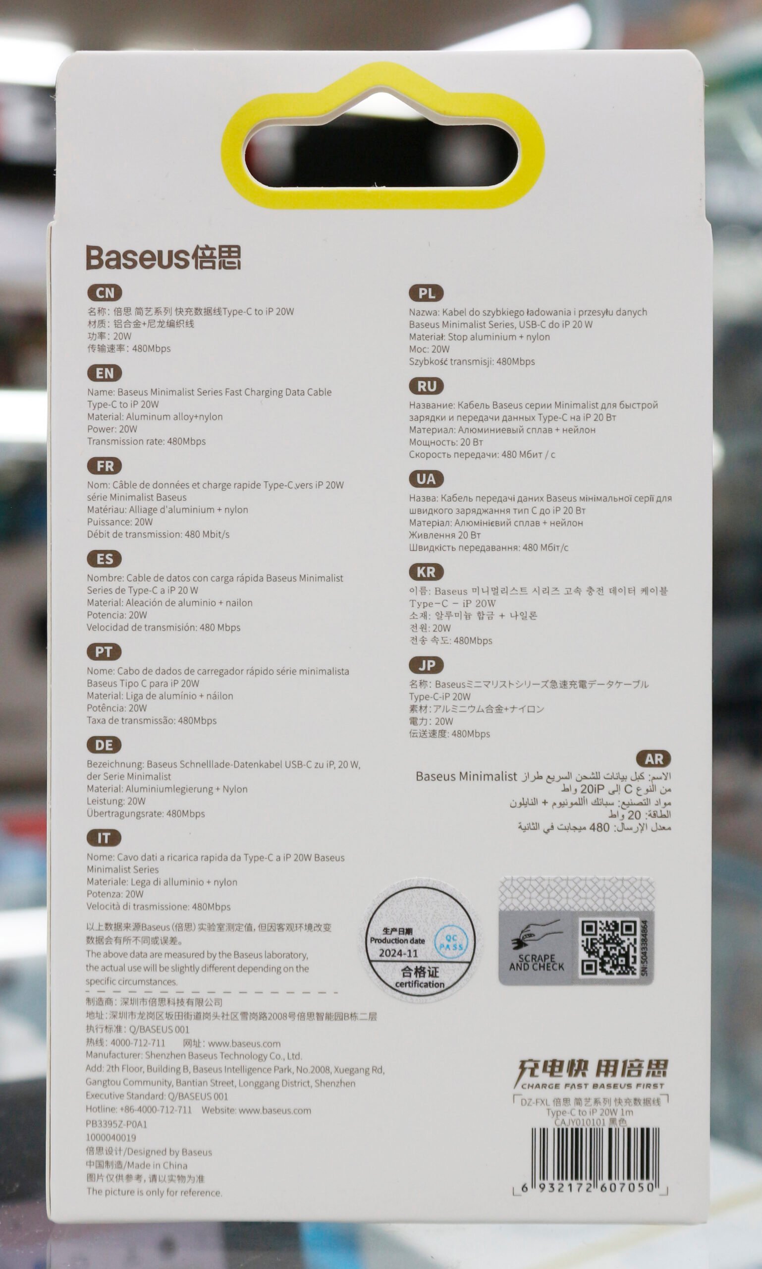 The latest price of Baseus Minimalist Series 20W Type-C to iP Fast Charging Data Cable in Bangladesh is ৳500 You can buy the Baseus Minimalist Series 20W Type-C to iP Fast Charging Data Cable at best price from our website or visit any of our Store.