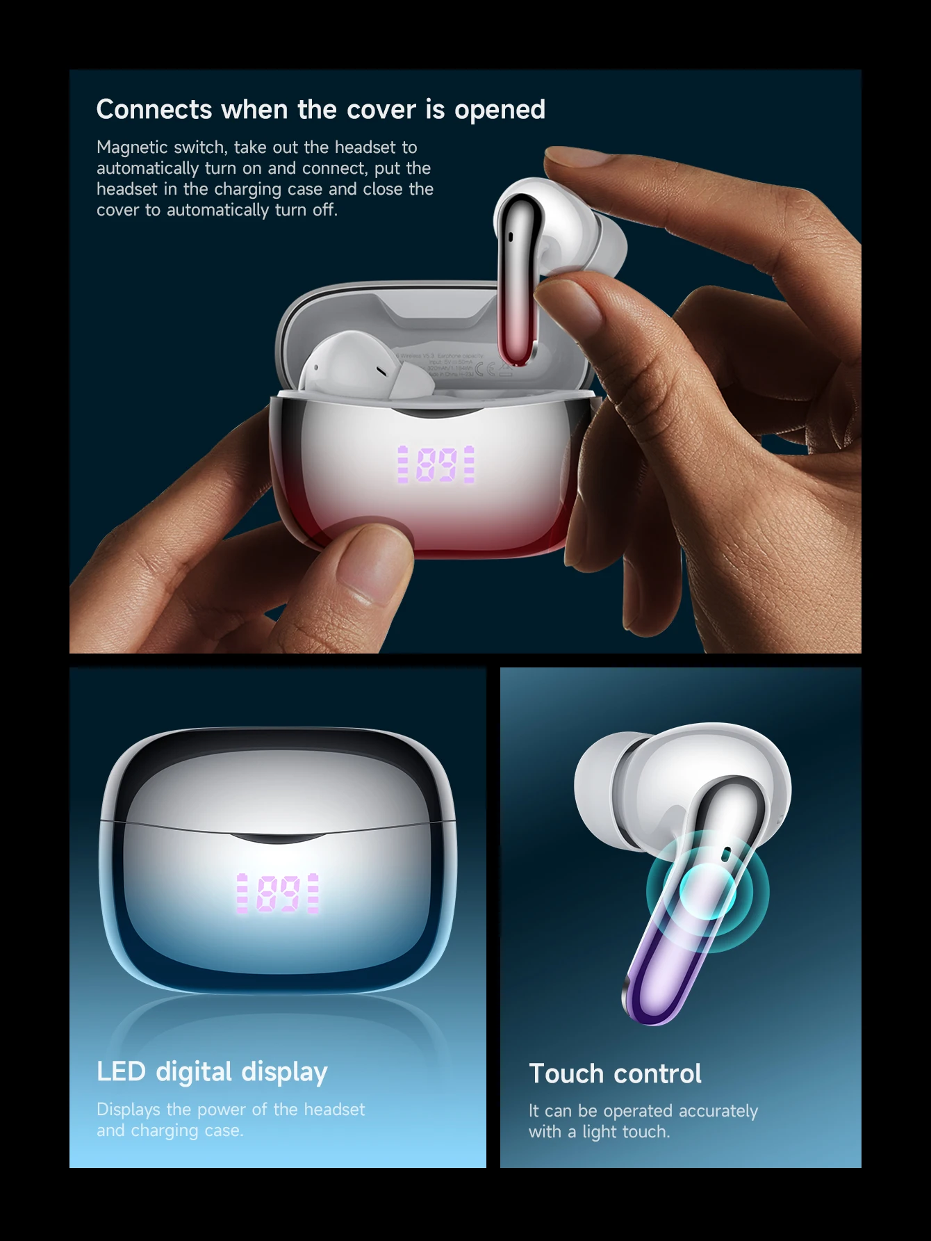 - Stylish Design and Comfortable Fit:The Hoco EQ16 isn’t just about performance; it’s also about aesthetics. The charging case features an eye-catching electroplating gradient color design, while the earbuds themselves are compact and lightweight for a comfortable fit.