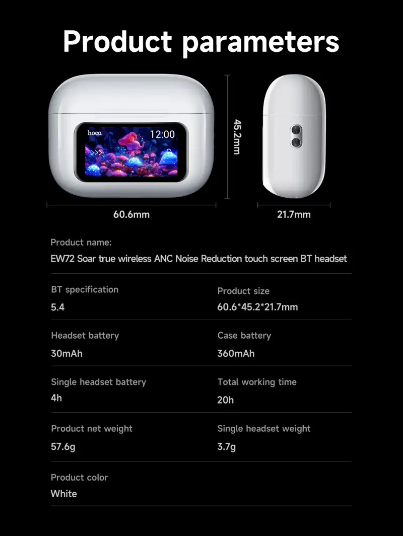 HOCO EW72 ANC TWS Earbuds with Display